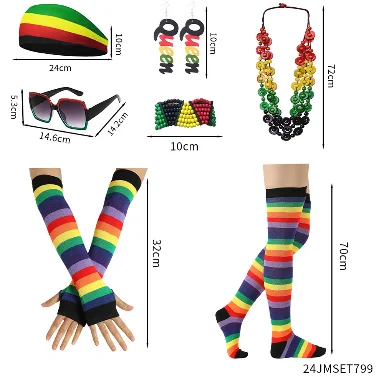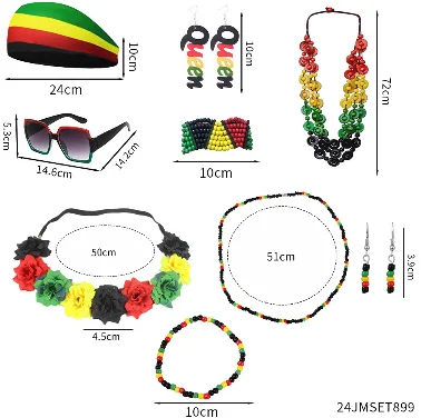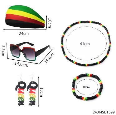 7 Jamaican Ladies Jewelry Set Rasta Headband Oversized Square Sunglasses Rasta B