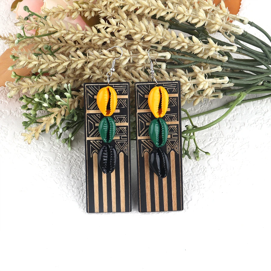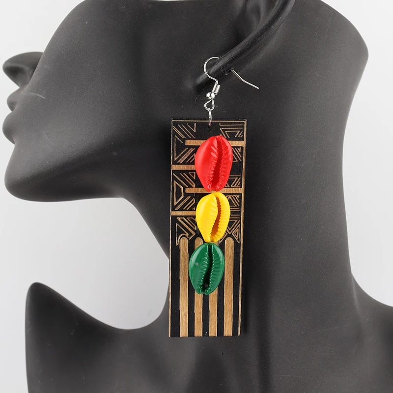 African Woman Rasta Wooden Earrings can mixed colors