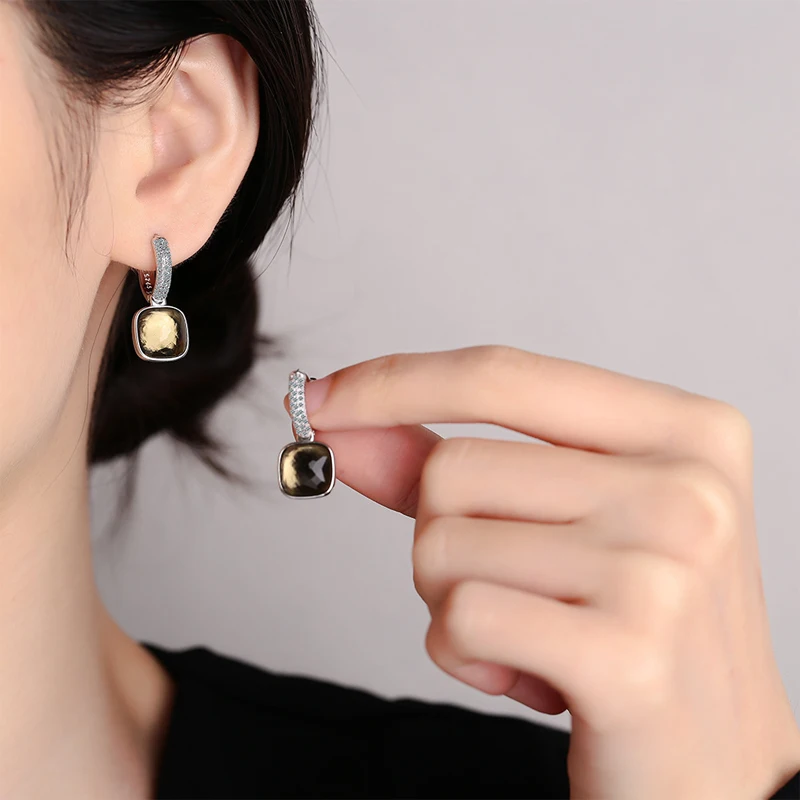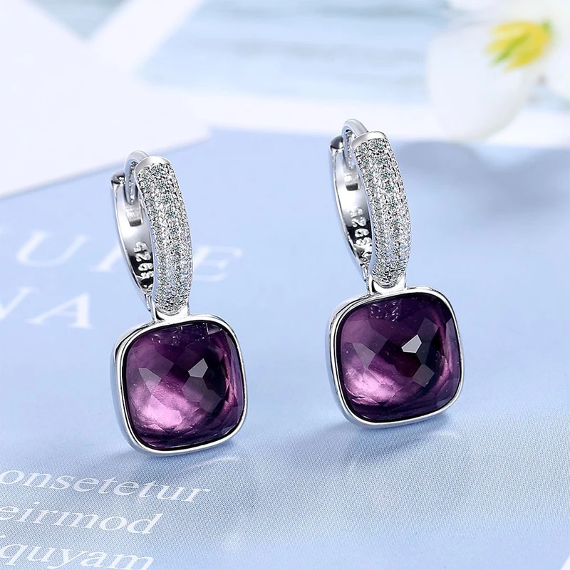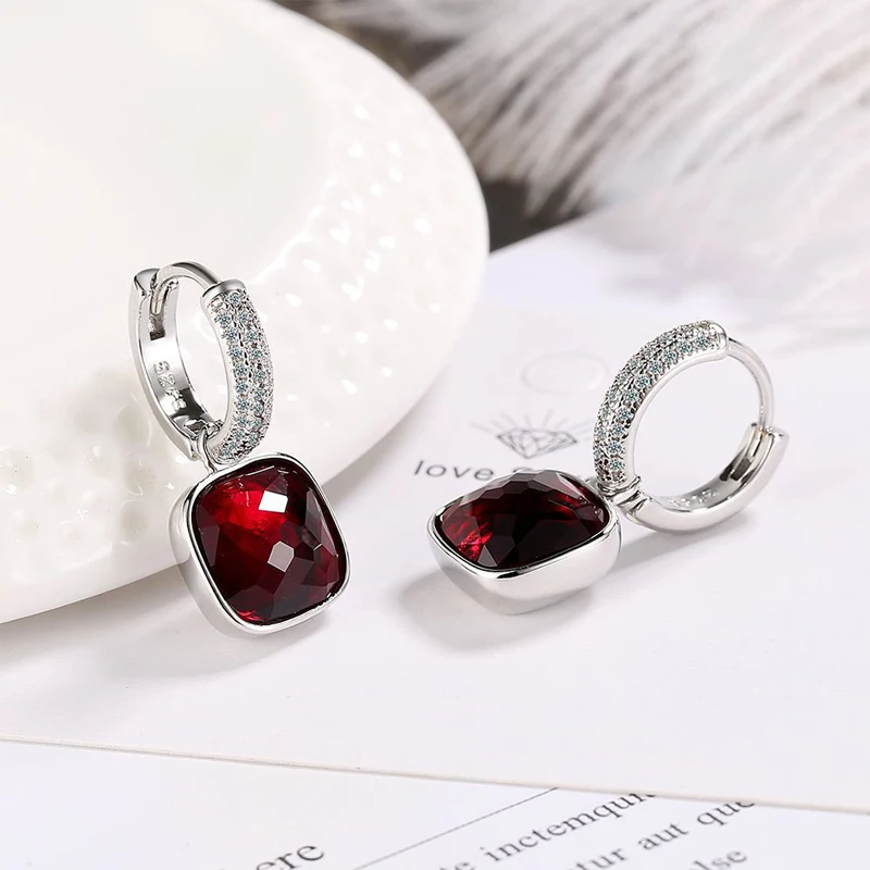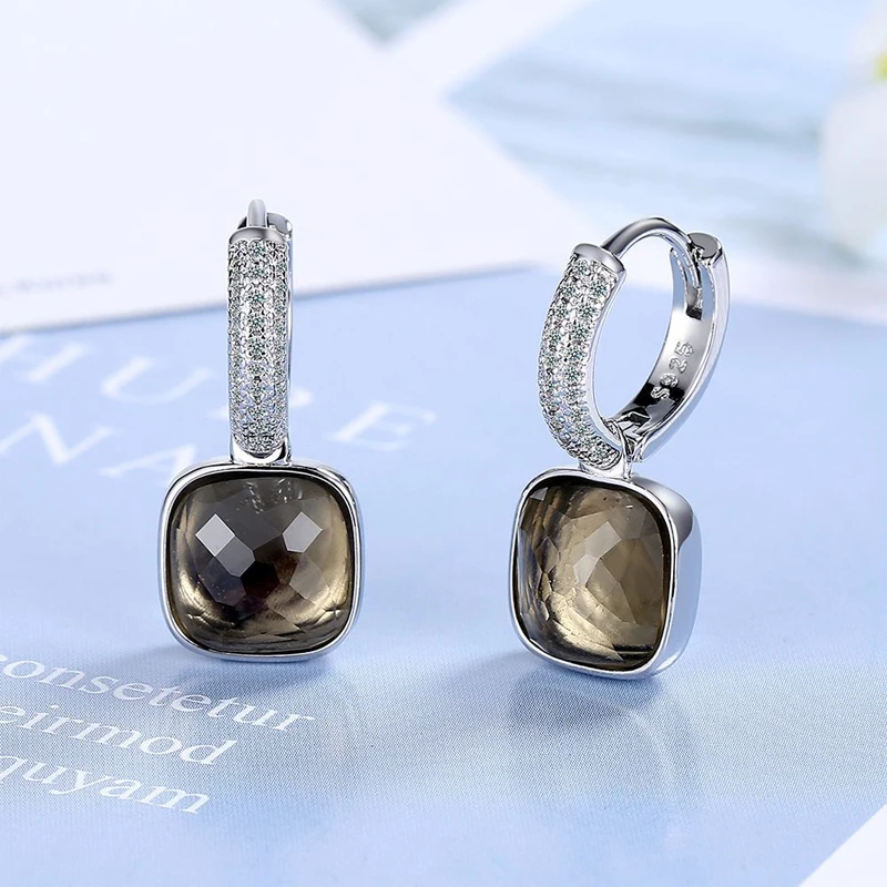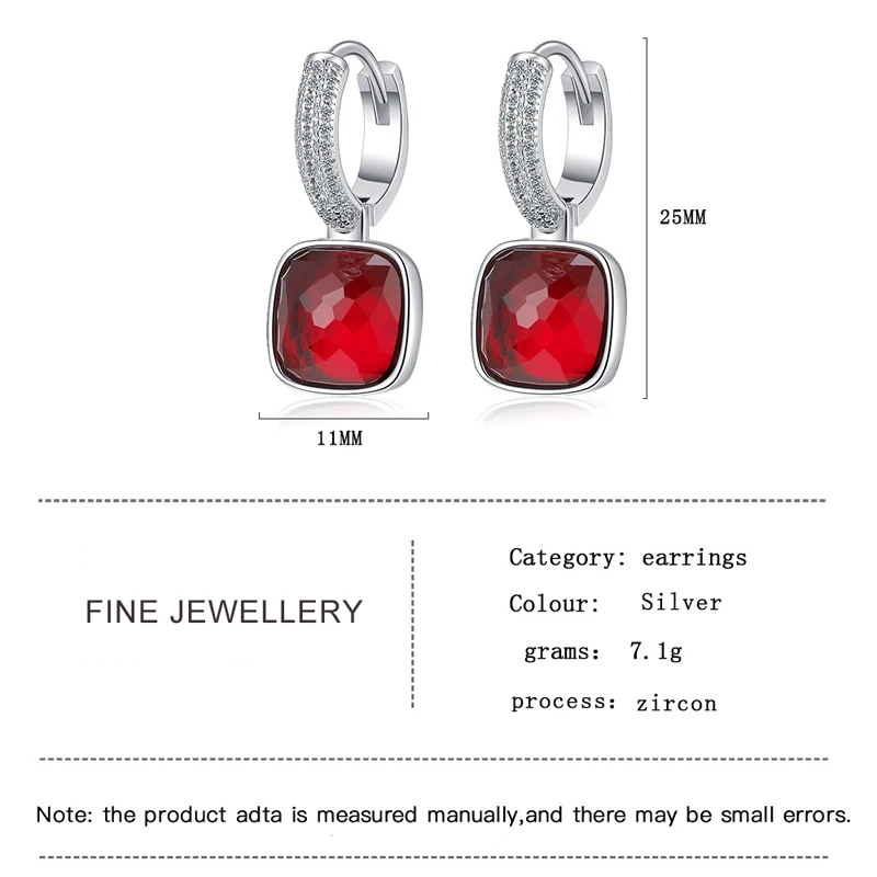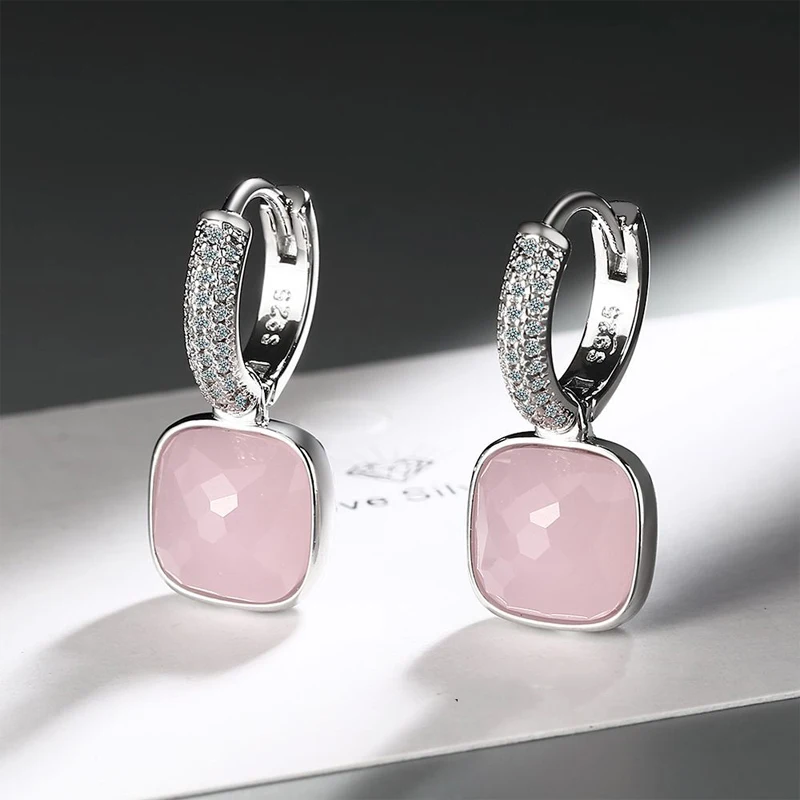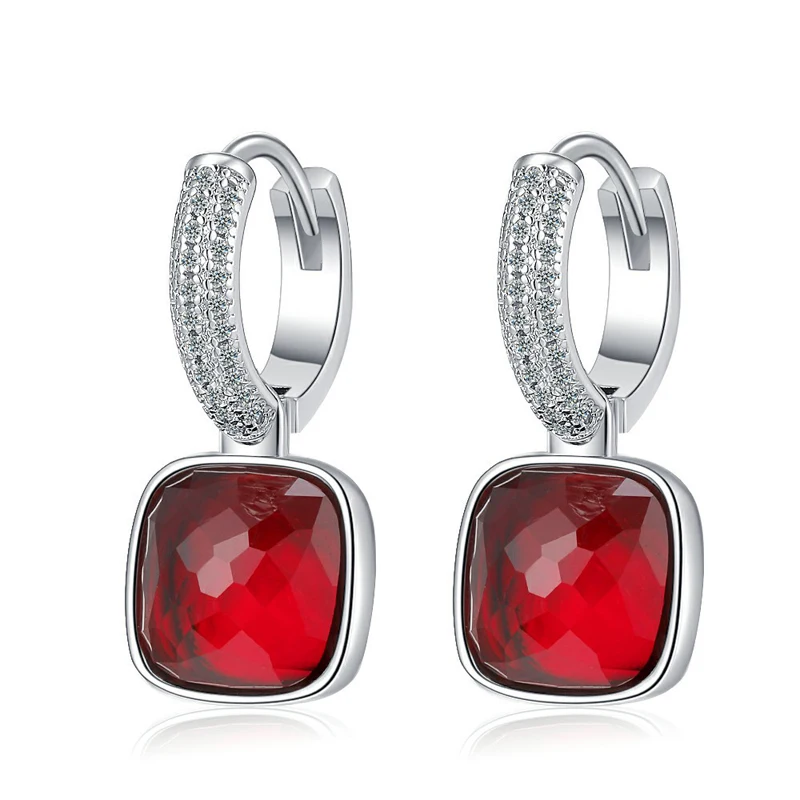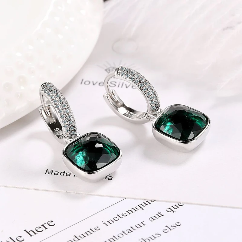 MEETSOFT 925 Silver Geometric Block Zirconia Hoop Earrings for Fashion Women Lig