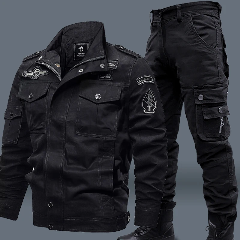 Military Airsoft Clothes Sets Men Multi-pocket Cargo Jackets Pants Paintball Suits Windproof Bomber Tactical Coats Set Size 6XL