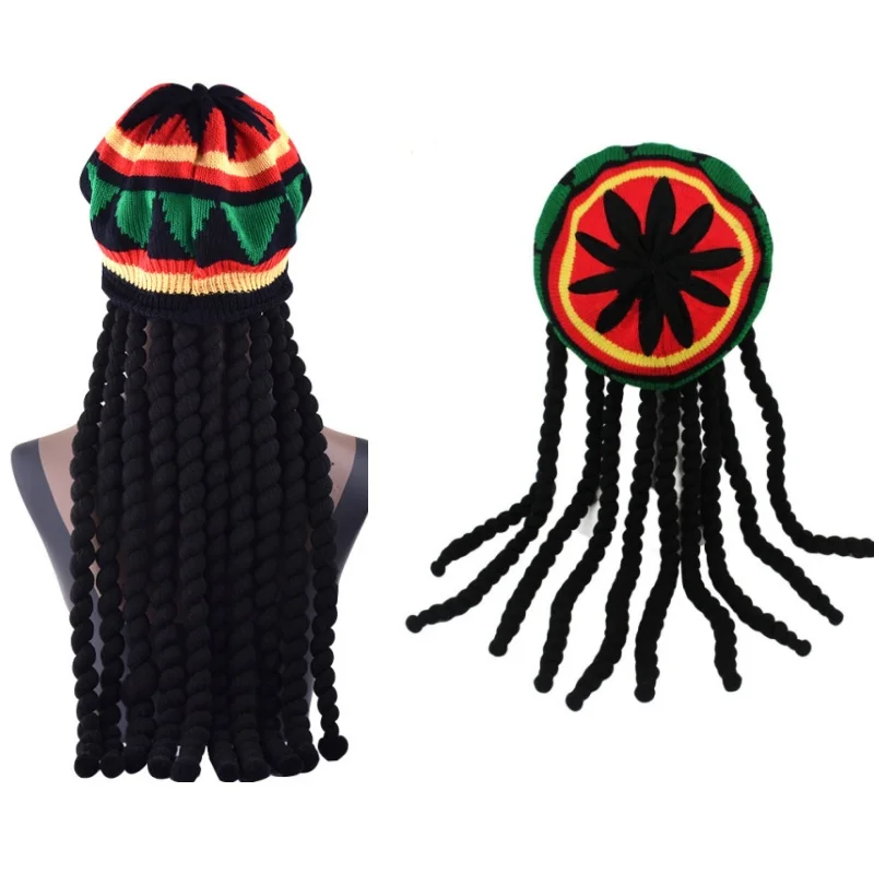 Unisex Synthetic Wig Knit Braid Hat Jamaican Bob Rasta Beanie Cap Dreadlocks Wig