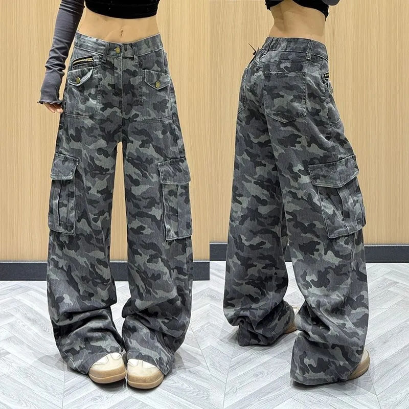 Retro Camouflage Work Pants Women's Spring Autumn Loose Slimming Floor-Length Tr